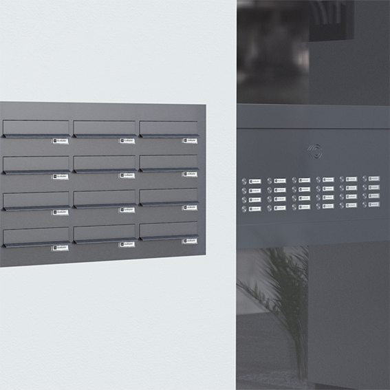 Business Class The JU Business Class is designed for high demands and the systems are equipped with high-quality built-in components. In this model, a Nova 20 mm shell cladding with a 70 mm roof overhang including LED lighting is installed. Mailboxes Die Anzahl und Anordnung der Briefkasten sowie des Sprech-Klingelfachs kann individuell auf Ihre Wünsche angepasst werden. Dieses Modell ist mit 6 senkrechten Briefkasten sowie einem Sprech-Klingelfach ausgestattet, die durch die LED-Beleuchtung optimal beleuchtet werden. Doors Die 6 Briefkasten sind mit Türen und Einwurfklappen aus Edelstahl ausgestattet. Accessories The laser-cut business class intercom screen, bell buttons and nameplates are built into the intercom / bell compartment. The components are built in to prevent theft and can only be operated with a key and special tools. Business Class The JU Business Class is designed for higher demands. It is characterized by high-quality components and an appealing design. Our business-class mailboxes can be put together according to your wishes. From the arrangement and the number of mailboxes, through the panels and plaster frames to the installation components, the mailboxes can be perfectly adapted to the requirements of our customers. Hull panelling Nova 20 mm 22-320 Roof overhang extension 70 mm for Nova panelling including LED lighting 21-697 Mail slot flap Intercom grid 21-176 Cylinder lock 21-109 Name plate made of plexiglas 21-255 Doorbell button made of stainless steel, rust-free 21-217E Name plate anti-theft, flush-mounted made of plexiglas 21-134 Product samples - Business Class Through-wall mailbox for masonry Through-wall mailbox for masonry Through-wall mailbox for masonry Through-wall mailbox for masonry Through-wall mailbox for the door side Through-wall mailbox for the door side Through-wall mailbox for the door side Through-wall mailbox for the door side Through-wall mailbox for the door side Through-wall mailbox for the door side Through-wall mailbox for the door side Fence-mounted mailbox Senkrechte Briefkasten Vertical mailbox Vertical mailbox Vertical mailbox Vertical mailbox Vertical mailbox Vertical mailbox Vertical mailbox Vertical mailbox Vertical mailbox Vertical mailbox Vertical mailbox Vertical mailbox Vertical mailbox Vertical mailbox Vertical mailbox Horizontal boxes (space-saving) Horizontal boxes (space-saving) Horizontal boxes (space-saving) Horizontal boxes (space-saving) Horizontal boxes (space-saving) Horizontal boxes (space-saving) Horizontal boxes (space-saving) Horizontal boxes (space-saving) Horizontal boxes (space-saving) Horizontal boxes (space-saving) Horizontal boxes (space-saving) Horizontal boxes (space-saving) Horizontal boxes (space-saving) Horizontal boxes (space-saving) Horizontal boxes (space-saving) Horizontal boxes (space-saving) Horizontal boxes (space-saving) Horizontal boxes (space-saving) Horizontal boxes (space-saving) Safety Class Deposit boxes Deposit boxes Intercom and doorbell system Parcel locker system Parcel locker system Parcel locker system Parcel locker system Parcel locker system