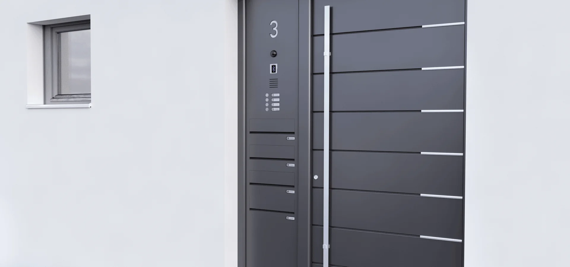 02 First Class fully insulated door side system model 02-941 ISO aluminium front plate and mail slot flap I/D compartment with intercom grid 21-174 doorbell button 21-216FW name plate 21-134 module preparation for modules to be supplied house number engraving with white acrylic glass LED backlit by the customer (fingerprint, camera) Model 02Through-wall mailbox for the door side Flush-mounted insulated mail slot flaps The fully-insulated mailbox system for installation in the door side has flush-mounted, recessed Avantgarde mail slot flaps with finger recess for easy opening. The mail slot flaps are fitted with a return brake and interlock in order to prevent rattling noises and wind effects. As is the case with all door side system, mail is thrown in from the front and removed from the rear or the interior compartment. with flush-mounted, illuminated house number made of plexiglas prepared for on-site installation components (camera, fingerprint, etc.) intercom/doorbell system flush-mounted, illuminated doorbell buttons all lighting elements are designed in long-life and energy-saving LED technology. The front plate can be thermally insulated in various insulation thicknesses for door side systems. Standard model: fully-insulated inner box with 10 mm insulation all around door 10 mm insulated with additional rubber seal mail slot flap insulated with a soft-close system front plate from 30 mm installation thickness Variants Economy Class (simple and functional design) conventionally proven mail slot flaps front plate 24 - 44 mm, completely heat-insulated LM intercom grid, plastic doorbell/light sensor standard colours: EV1 at LM front, RAL 7016, RAL 8022, RAL 9007, RAL 9016 and DB 703, all other colours with a colour surcharge standard lock 21-109 Business Class (model for sophisticated demands) SCS version (dampened mail slot flaps) at no surcharge front plate 24 - 44 mm, completely thermally separated punched intercom grid, stainless steel doorbell/light sensor LED backlit flush-mounted name plate reinforced pin cylinder with master key function 21-120 First Class (fully-insulated model) flush-mounted, cushioned and insulated Avantgarde mail slot flaps front plate 30 - 44 mm, thermally separated laser cut intercom grid flush-mounted stainless steel doorbell button with ring lighting LED backlit flush-mounted name plates housings and removal doors insulated, incl. surrounding seal reinforced pin cylinder with master key function 21-120 Normal installation Economy Class Business Class First Class Partial installation Economy Class Business Class First Class Partial installation with middle frame Economy Class Business Class First Class Downloads Modell 02 Durchwurfbriefkasten für das Türseitenteil (990 KB) Model 02 Door side systems (990 KB) Katalog DE (11 MB) Catalogue EN (11 MB) Catalogue FR (6,7 MB)