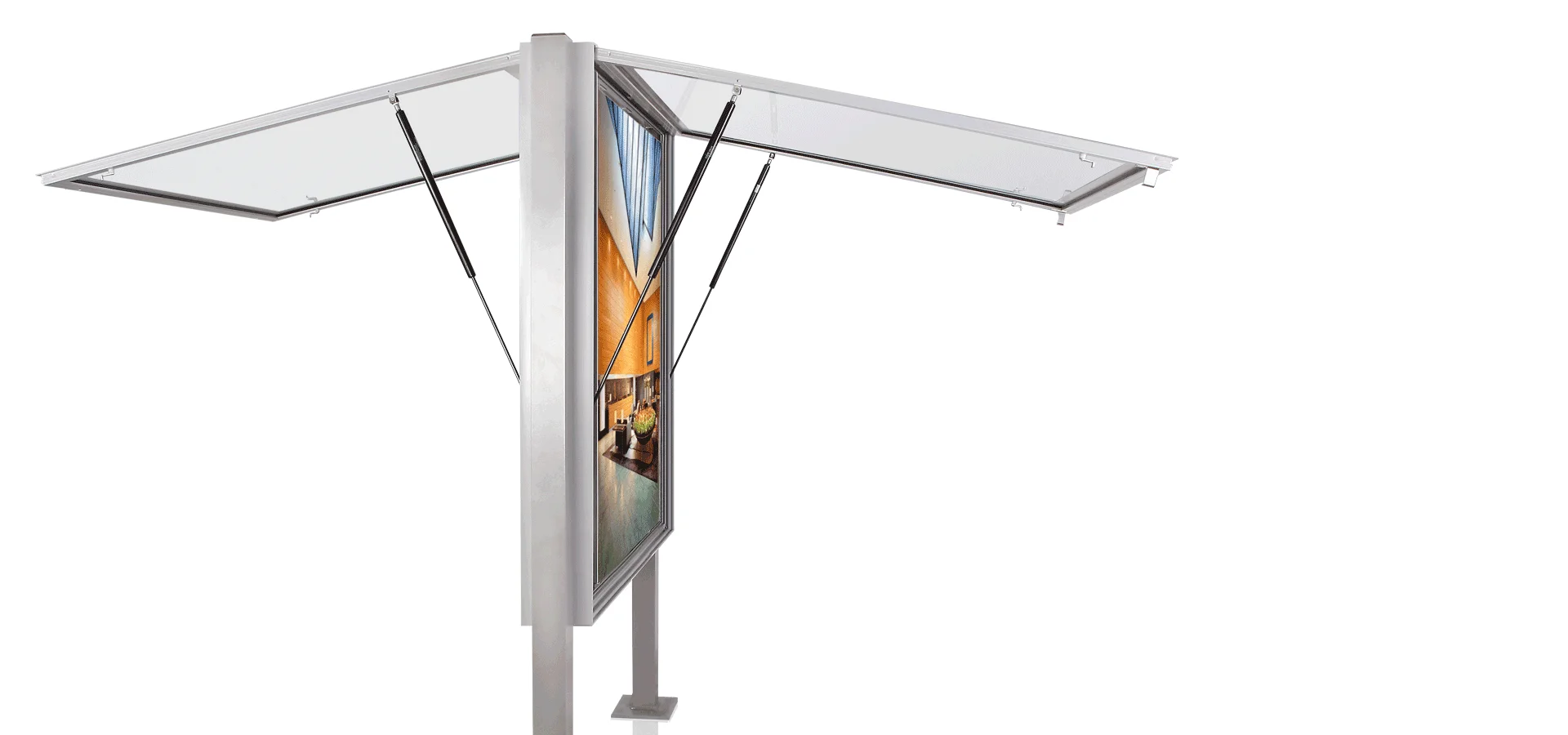 11 Aluminiumkonstruktion aus verwindungssteifen, eckigen Profilen Drehflügel mit verdeckt liegenden Drehbändern oder Klappflügel mit Gasdruckfedern Verglasung mit 5 mm ESG in EPDM-Dichtungen und Glasleistensystem Sicherheitsverschluss mit einem Hebelzylinderschloss (Verschlussseite > 700 mm = 2 Schlösser) EPDM-Anschlagdichtung zwischen Flügel und Rahmen Verdeckt liegende Be- und Entlüftung gegen Beschlagen der Scheibe, versehen mit Insektenschutzgitter Mittige Magnethaftplatte, pulverbeschichtet weiß Oberfläche der Profile silber eloxiert, E6/ EV1 Optional mit Beleuchtung und Beschriftungsblende aus Acrylglas oder Hinterleuchtung Modell 11Schaukasten Einfacher Schaukasten für Hausmitteilungen – Nur für den Innenbereich geeignet. Gehäuse aus feuerverzinktem Stahlblech in RAL 9016 Verkehrsweiß oder RAL nach Angabe Pulverbeschichtet. Türe rechts angeschlagen aus Einscheibensicherheitsglas 5 mm mit Hebelzylinderschloss. Lieferung erfolgt mit 6 Stk. Haftmagneten (DIN A3), 9 Stk. Haftmagneten (DIN A2). Aluminiumkonstruktion aus verwindungssteifen, eckigen Profilen; Drehflügel mit verdeckt liegenden Drehbändern oder Klappflügel mit Gasdruckfedern; Verglasung mit 5 mm ESG in EPDM-Dichtungen und Glasleistensystem; Sicherheitsverschluss mit einem Hebelzylinderschloss (Verschlussseite > 700 mm = 2 Schlösser); EPDM-Anschlagdichtung zwischen Flügel und Rahmen; Verdeckt liegende Be- und Entlüftung gegen Beschlagen der Scheibe, versehen mit Insektenschutzgitter; Magnethaftplatte, pulverbeschichtet weiß; Rückwand mit 4 Sicken für eine flächenbündige Wandmontage; Oberfläche der Profile silber eloxiert, E6/ EV1; Optional mit Beleuchtung und Beschriftungsblende aus Acrylglas oder Hinterleuchtung Schaukasten (125 mm Bautiefe beidseitig) Aluminiumkonstruktion aus verwindungssteifen, eckigen Profilen Drehflügel mit verdeckt liegenden Drehbändern oder Klappflügel mit Gasdruckfedern Verglasung mit 5 mm ESG in EPDM-Dichtungen und Glasleistensystem Sicherheitsverschluss mit einem Hebelzylinderschloss (Verschlussseite > 700 mm = 2 Schlösser) EPDM-Anschlagdichtung zwischen Flügel und Rahmen Verdeckt liegende Be- und Entlüftung gegen Beschlagen der Scheibe, versehen mit Insektenschutzgitter Mittige Magnethaftplatte, pulverbeschichtet weiß Oberfläche der Profile silber eloxiert, E6/ EV1 Optional mit Beleuchtung und Beschriftungsblende aus Acrylglas oder Hinterleuchtung Variants Schaukasten (30 mm Bautiefe) Aluminiumkonstruktion aus verwindungssteifen, eckigen Profilen Drehflügel mit verdeckt liegender Scharnierstange Verglasung mit 3 mm Acrylglas (4 mm ESG bis Baugröße A3 preisgleich) in EPDM-Dichtung, optional auswechselbar Sicherheitsverschluss mit einem Hebelzylinderschloss (Verschlussseite > 700 mm = 2 Schlösser) EPDM-Anschlagdichtung zwischen Flügel und Rahmen Magnethaftplatte, pulverbeschichtet weiß Rückwand mit 4 Sicken für eine flächenbündige Wandmontage Oberfläche der Profile silber eloxiert, E6/ EV1 Einsatz nur im geschützten Außenbereich empfohlen Schaukasten (35 mm Bautiefe) Aluminiumkonstruktion aus verwindungssteifen, eckigen Profilen Drehflügel mit verdeckt liegenden Drehbändern, alternativ Klappflügel mit Aufstellstange Verglasung mit 4 mm ESG in EPDM-Dichtung, auswechselbar Sicherheitsverschluss mit einem Hebelzylinderschloss (Verschlussseite > 700 mm = 2 Schlösser) EPDM-Anschlagdichtung zwischen Flügel und Rahmen Magnethaftplatte, pulverbeschichtet weiß Rückwand mit 4 Sicken für eine flächenbündige Wandmontage Oberfläche der Profile silber eloxiert, E6/ EV1 Optional mit Beleuchtung und lichtdichter Sichtblende Schaukasten (40/50 mm Bautiefe) Flächenbündige Glasfront mit umlaufendem Passepartout in Standard schwarz, andere RAL-Töne auf Anfrage Verdeckt liegende Aluminiumkonstruktion aus verwindungssteifen, eckigen Profilen Dreh- oder Klappflügel mit verdeckt liegenden Drehbändern Sicherheitsverschluss von unten oder von der Seite EPDM-Anschlagdichtung zwischen Flügel und Rahmen Verdeckt liegende Be- und Entlüftung gegen Beschlagen der Scheibe Magnethaftplatte, pulverbeschichtet weiß Rückwand mit 4 Sicken für eine flächenbündige Wandmontage Oberfläche der Profile silber eloxiert, E6/ EV1 Optional mit Beleuchtung Schaukasten (45 mm Bautiefe) Aluminiumkonstruktion aus verwindungssteifen, eckigen Profilen Drehflügel mit verdeckt liegenden Drehbändern oder Klappflügel mit Gasdruckfedern Verglasung mit 4 mm ESG in EPDM-Dichtung, auswechselbar Sicherheitsverschluss mit einem Hebelzylinderschloss (Verschlussseite > 700 mm = 2 Schlösser) EPDM-Anschlagdichtung zwischen Flügel und Rahmen Magnethaftplatte, pulverbeschichtet weiß Rückwand mit 4 Sicken für eine flächenbündige Wandmontage Optional mit Beleuchtung und Beschriftungsblende aus Acrylglas Oberfläche der Profile silber eloxiert, E6/ EV1 Schaukasten (61 mm Bautiefe) Aluminiumkonstruktion aus verwindungssteifen, eckigen Profilen Klappflügel mit verdeckt liegenden Drehbändern und Gasdruckfedern Verglasung mit 4 mm ESG in EPDM-Dichtung Sicherheitsverschluss mit einem Druckzylinderschloss (Verschlussseite > 700 mm = 2 Schlösser) EPDM-Anschlagdichtung zwischen Flügel und Rahmen Be- und Entlüftung gegen Beschlagen der Scheibe in der Rückwand Magnethaftplatte, pulverbeschichtet weiß Rückwand mit 4 Sicken für eine flächenbündige Wandmontage Optional mit Beleuchtung und Beschriftungsblende aus Acrylglas Oberfläche der Profile silber eloxiert, E6/EV1 Schaukasten (65 mm Bautiefe) Aluminiumkonstruktion aus verwindungssteifen, eckigen Profilen Drehflügel mit verdeckt liegenden Drehbändern oder Klappflügel mit Gasdruckfedern Verglasung mit 5 mm ESG in EPDM- Dichtungen und Glasleistensystem Sicherheitsverschluss mit einem Hebelzylinderschloss (Verschlussseite > 700 mm = 2 Schlösser) EPDM-Anschlagdichtung zwischen Flügel und Rahmen Verdeckt liegende Be- und Entlüftung gegen Beschlagen der Scheibe, versehen mit Insektenschutzgitter Magnethaftplatte, pulverbeschichtet weiß